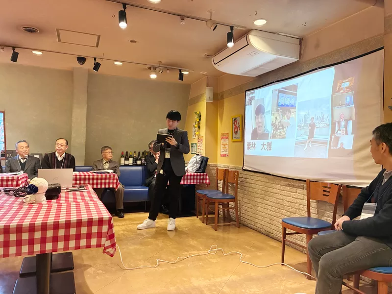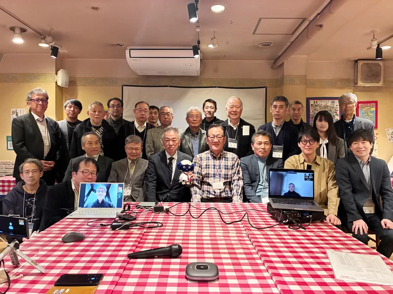 今回はオンライン参加者も2名いらっしゃったので、PC画面から記念撮影に参加。メ―インは会長の横に入らせていただきました。